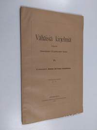 Koko nimi: "Amerikkaan" ; Wero- ja maanomistusoloista Wenäjällä - Vero- ja maanomistusoloista Venäjällä ; Nälkävuodet Wenäjällä 1890-luvulla ; Maanviljelijät yhteistoimintaan! Kolme esitelmää ; Kaksi unkarilaista valtiomiestäMerkinnät: omistajamerkintä (leima)Asiasanat: Venäjä, amerikansuomalaiset, siirtolaisuus