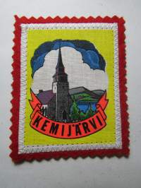 Kemijärvi -kangasmerkki / matkailumerkki / hihamerkki / badge -pohjaväri punainen