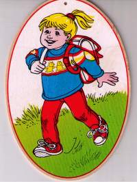 Marja-Liisa Pitkäranta, vanerikortti: Miettivä peikko-poika. Puutyö Harri Marjamaa. Kehitysvammatyön tukemiseen, Kehitysvammaisten tukiliitto ry. Kortin n:o 1435/ i. Koko 12x18. Kulkematon, Pitkäranta keräilyn lisäksi ihana lastenhuoneen simiste.
