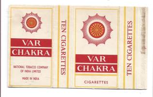 Three Twins -sikarietiketti, huomaa kohopainatus