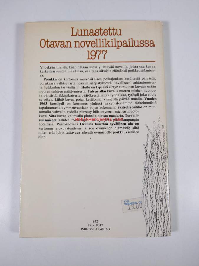 Hyvä. Tarkempi kuntoluokka: K3+ ; Hieman kulumaa kansissa, takana vanha hintalappu, selkämyksessä aavistus vinoutta. Kansipaperin kunto: joitain repeämiä/kulumaa