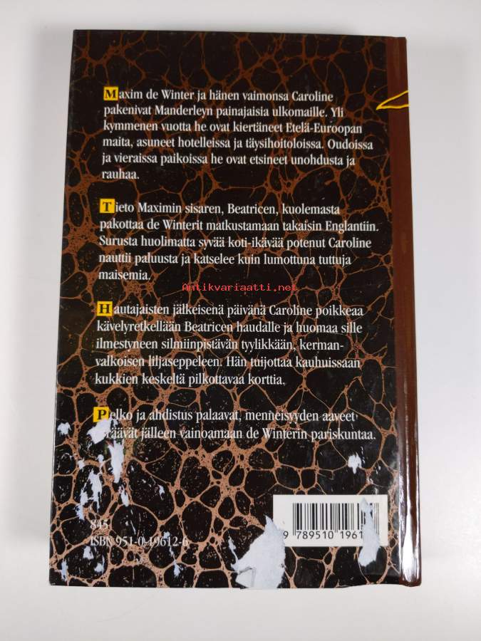 Muu(t) tekijä(t): Leena TamminenMerkinnät: omistajamerkintä leikattu pois etulehden ylälaidastaAlkuteos: Mrs de Winter