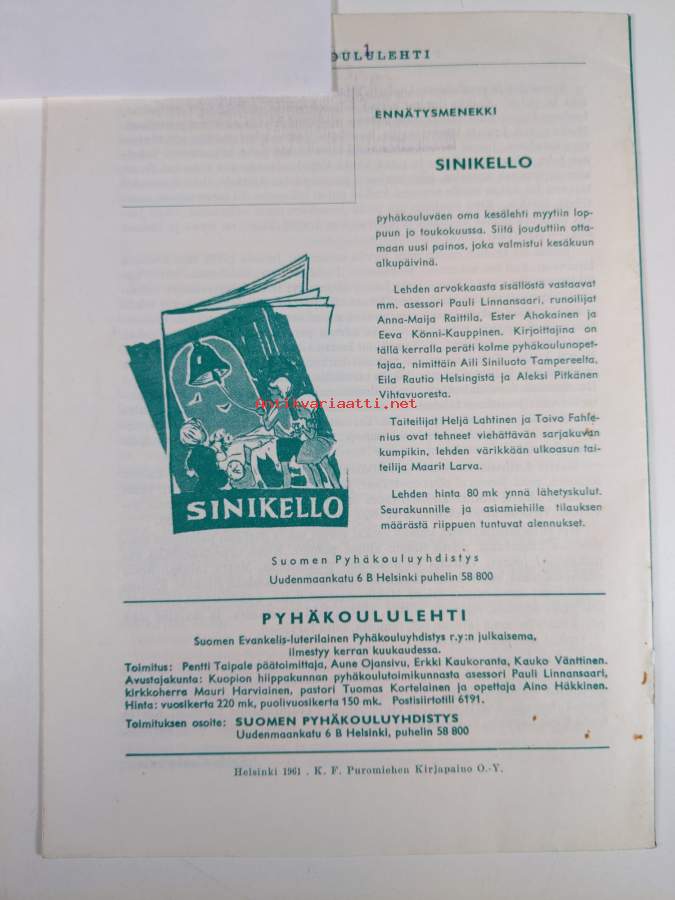 Pyhäkoululehti 7/1961