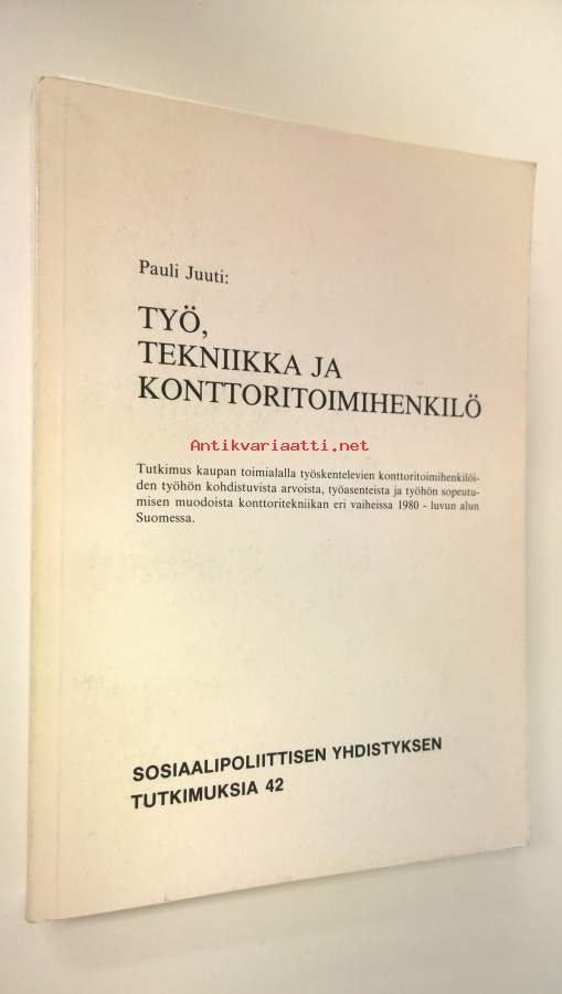 Koko nimi: Työ, tekniikka ja konttoritoimihenkilö : tutkimus kaupan toimialalla työskentelevien konttoritoimihenkilöiden työhön kohdistuvista arvoista, työasenteista ja työhön sopeutumisen muodoista konttoritekniikan eri vaiheissa 1980-luvun alun SuomessaSarja: Sosiaalipoliittisen yhdistyksen tutkimuksia 42