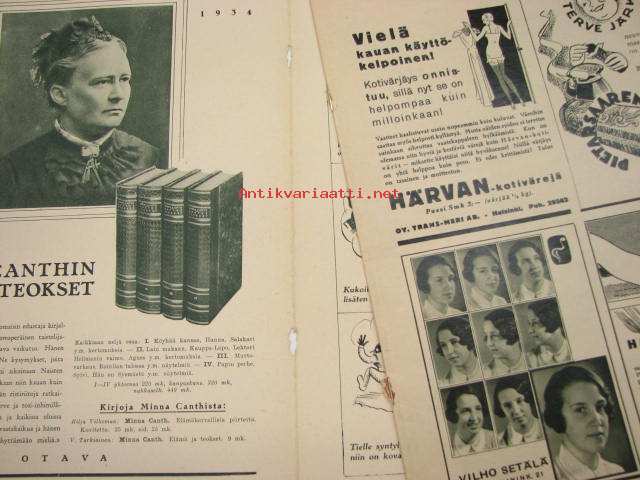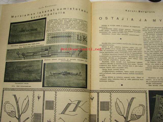 Oma Koti 1934 nr 9 toukokuu (kansi Martta Wendelin), Äitini virsi, monivuotisia kukkia, Morsiamen lakanat somistetaan, Puikot ja villalankaa, Kieku ja Kaiku