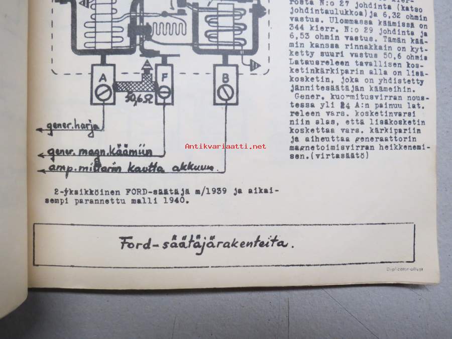 Kytkinkaavakokoelma - Ammattikasvatushallitus koulutusmoniste noin v. 1945 -amerikkalaisvalmisteisten autojen sähkölaiteopetuskaavoja noin vuoteen 1942 asti