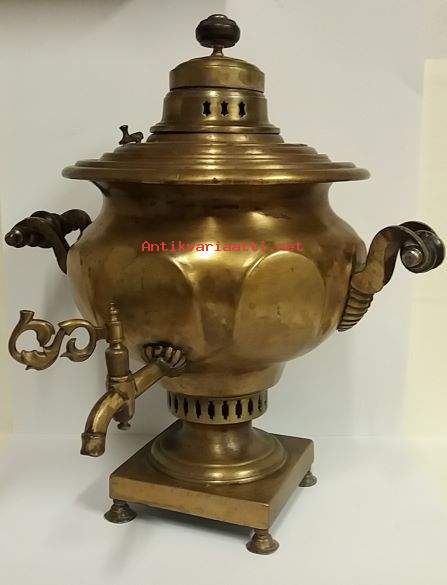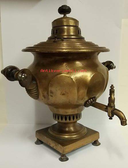 Vanha messinkinen samovaari. (Antiikkia, keräilyesine, koriste-esine)