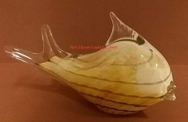 Käsin tehty ja vapaasti puhalletun lasilinnun dimensiot 30 ¤ 16 cm ja leveys noin 11 cm ja paino 1418 g. 1900 -luku.