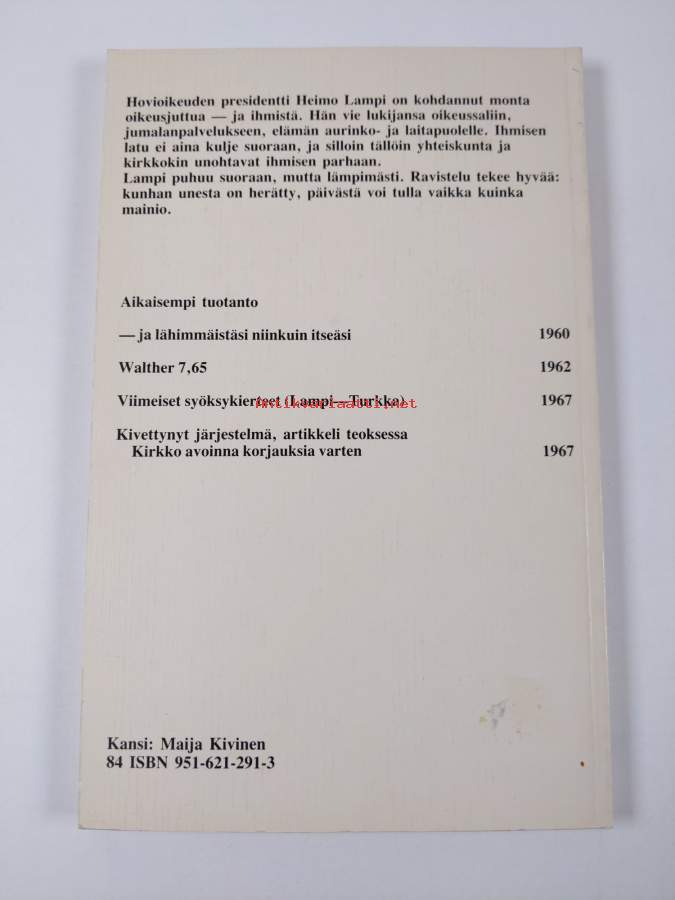 Tuomarin kirjoituksia viideltä vuosikymmeneltä / Paavo Alkio