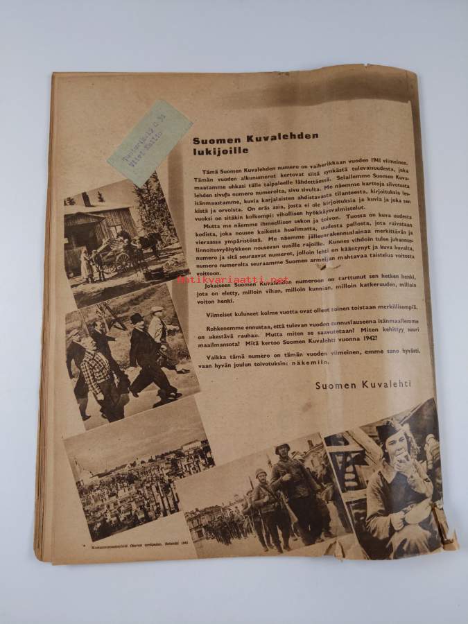 SPR,Suomen Invaliidi, Suomen Heimo, Suomen Sotilas, Suomen Aliupseeri ja Urheilu-Joulu 1942 - firmalomake 6 kpl