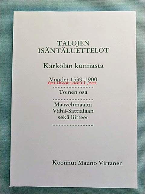 Talojen isäntäluettelot Kärkölän kunnasta 2. osa - Vuodet 1539-1900 - Maavehmaalta Vähä-Sattialaan sekä liitteet [ Kärkölän historiaa ]