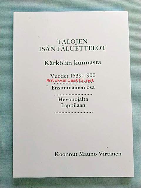 Talojen isäntäluettelot Kärkölän kunnasta 2. osa - Vuodet 1539-1900 - Maavehmaalta Vähä-Sattialaan sekä liitteet [ Kärkölän historiaa ]
