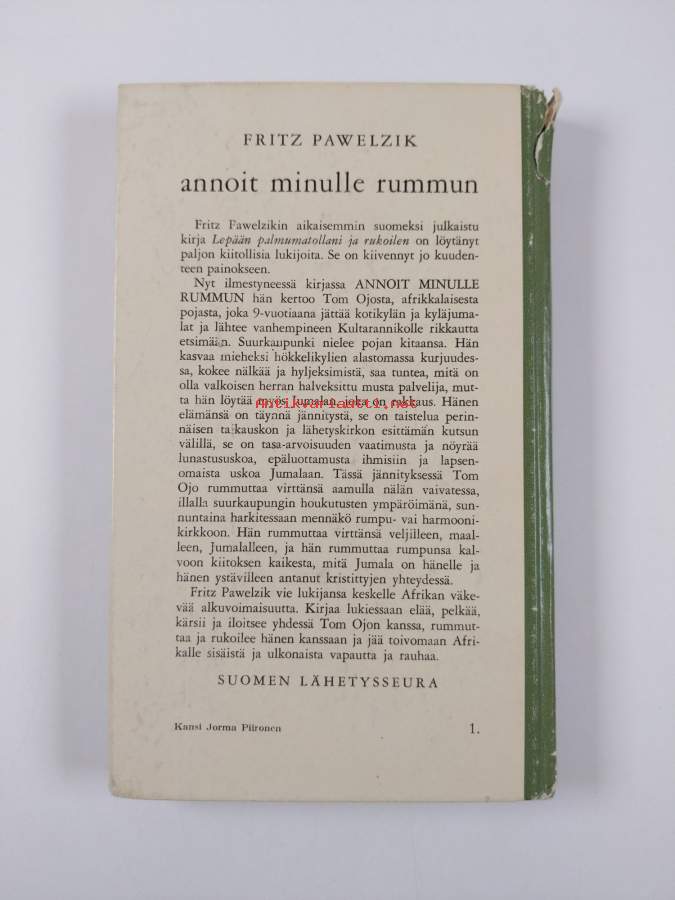 Hyvä. Tarkempi kuntoluokka: K3- ; Hieman repeämää selkämyksen yläpäässä, hieman kulumaa kansissa