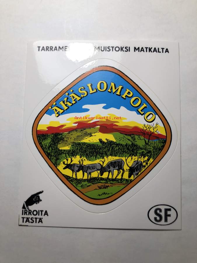 Äkäslompalo -tarra, matkamuistotarra 1970-luvulta