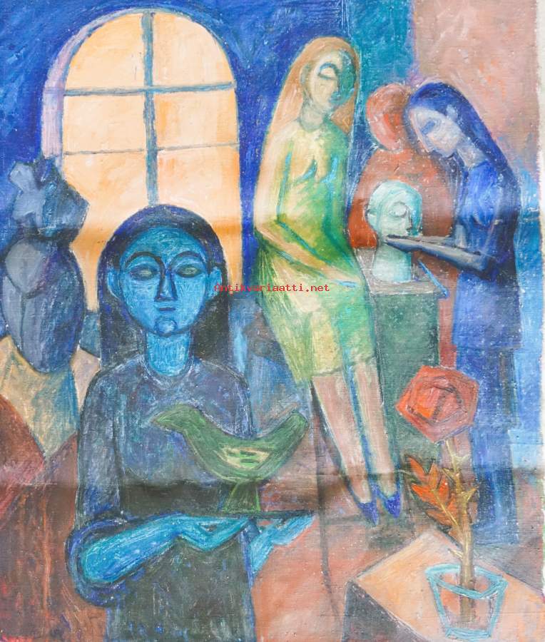 Leena Immonen. "Miesmalli" öljyvärimaalaus kankaalle, ei sign 70x50 cm kehystämätön / Leena-Maija Immonen 1927-2001 Haagan taiteilijaseura