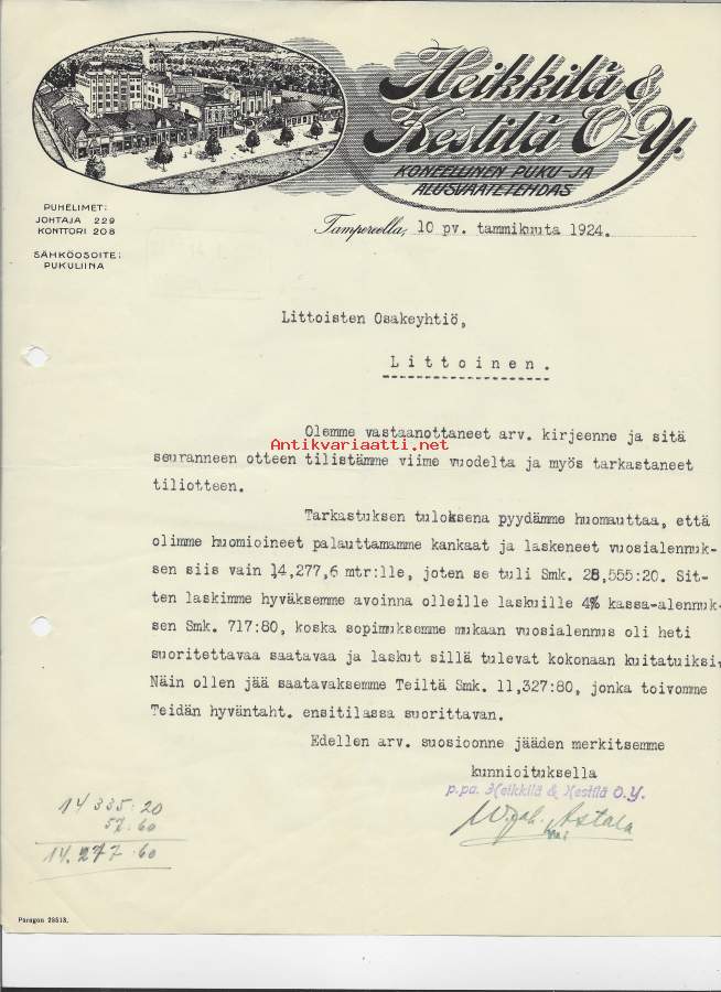 Heikkilä & Kestilä Oy Tampere 1924 - firmalomake