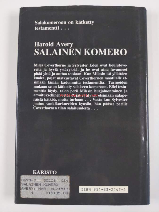 Hyvä. Pienoista kolhua, hieman kulumaa, takana vanha hintalappu, tyhjä etulehti irrotettu. Kansipaperin kunto: pientä kulumaa