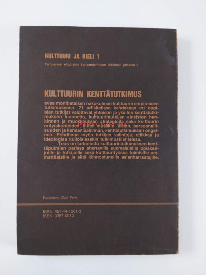 Muu(t) tekijä(t): Lassi Saressalo, Päivikki SuojanenMerkinnät: omistajamerkintäSarja: Tampereen yliopiston kansanperinteen laitoksen julkaisu 9; Kulttuuri ja kieli 1Asiasanat: kulttuuri