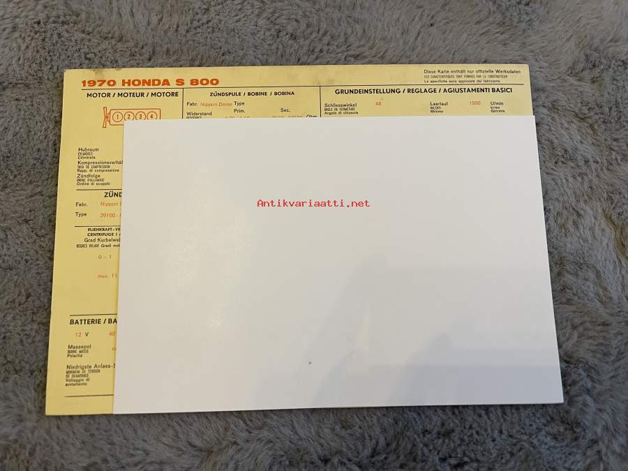 Honda S 800 1970 - säätöarvokortti / säätöarvot, monikielinen -technical specifications, multilingual