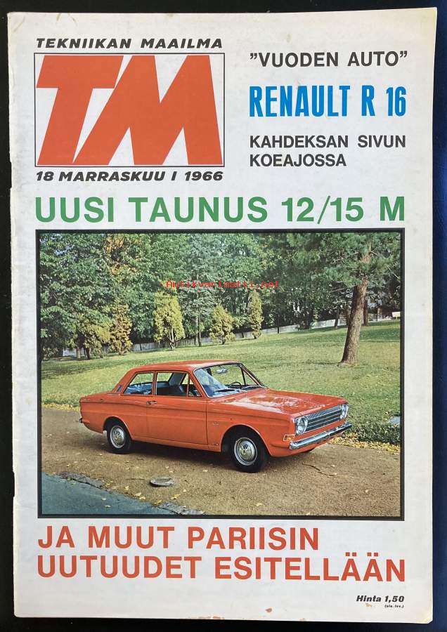 Tekniikan Maailma - 18/1966 - Marraskuu - Koeajossa ja artikkeleissa mm. Renault R 16, ja Taunus
