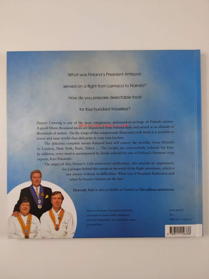 Muu(t) tekijä(t): Mikko Oksanen, Anna-Maija Tanttu ym.Merkinnät: omistajamerkintäAlkuteos: Taivaallista tarjottavaa Finnairin keittiöstä ja viinikellaristaAsiasanat: ruokaohjeet, ruokakulttuuri, ateriat, lentoyhtiöt
