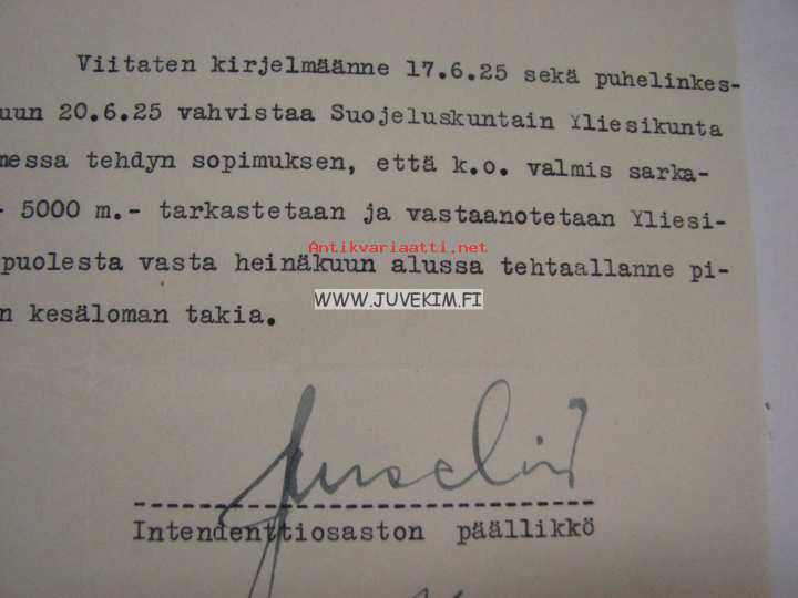 Littoinen Oy / Suojeluskuntain Yliesikunta Hankintasopimus -asiakirja Kopio