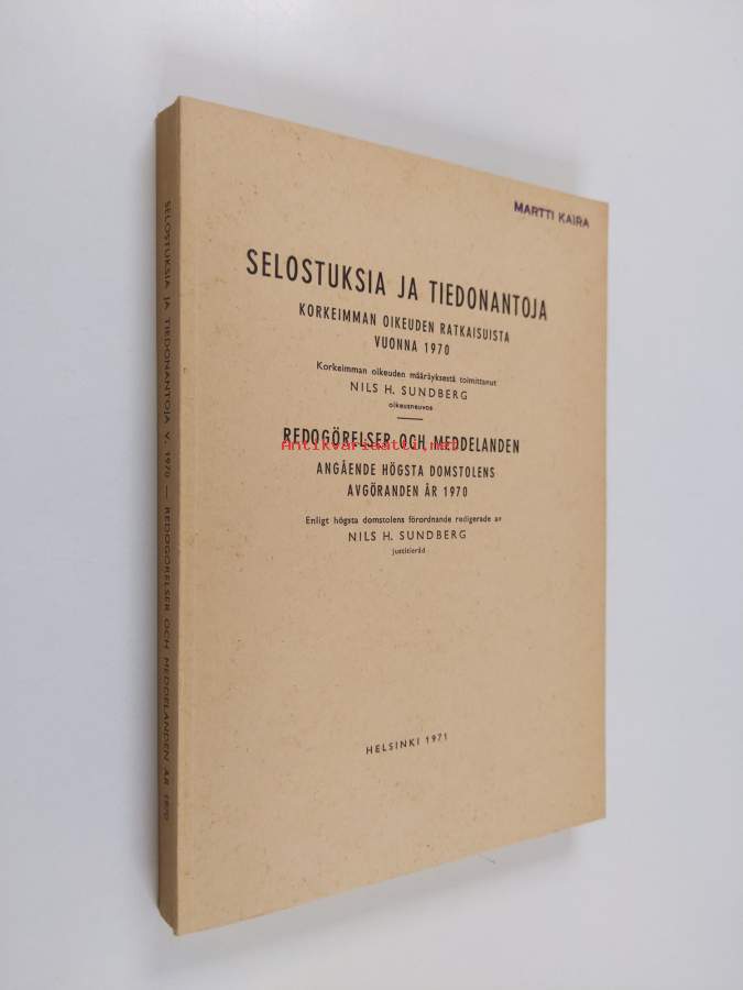 Selostuksia ja tiedonantoja Korkeimman oikeuden ratkaisuista vuonna 1970