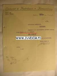 Lindqvist & Fredriksson Hämeenlinna 4.12.1926 -asiakirja