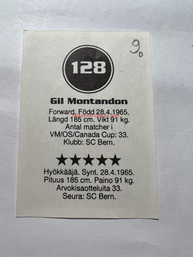Gil Montandon jääkiekko -keräilykortti / tarra