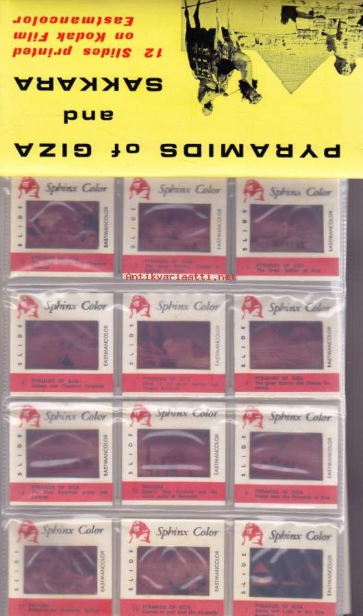 Pyramids of Giza and Sakkara. 12 slides printed on Kodak Film Eastmancolour. Gizan ja Sakkaran pyramidit - 12 diakuvaa, sarja 1.