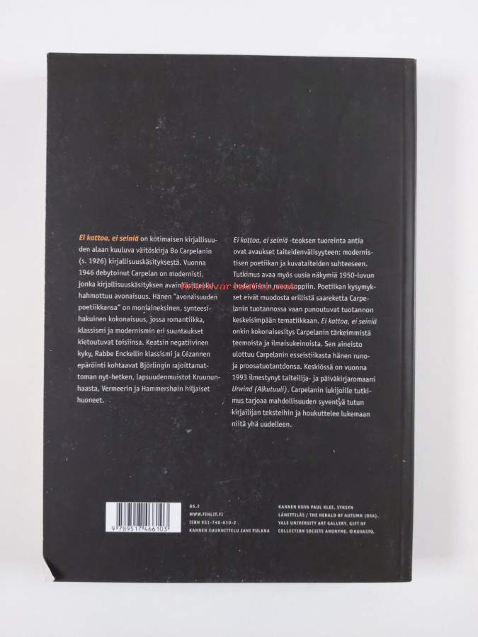 Ei kattoa, ei seiniä : näkökulmia Bo Carpelanin kirjallisuuskäsitykseen
