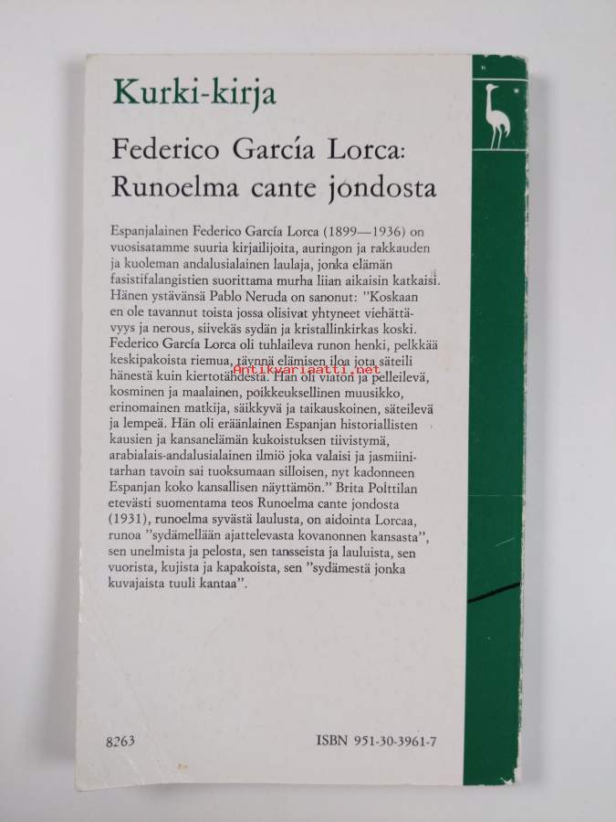 Muu(t) tekijä(t): Brita PolttilaMerkinnät: omistajamerkintäSarja: Kurki-kirjaAlkuteos: Poema del cante jondo