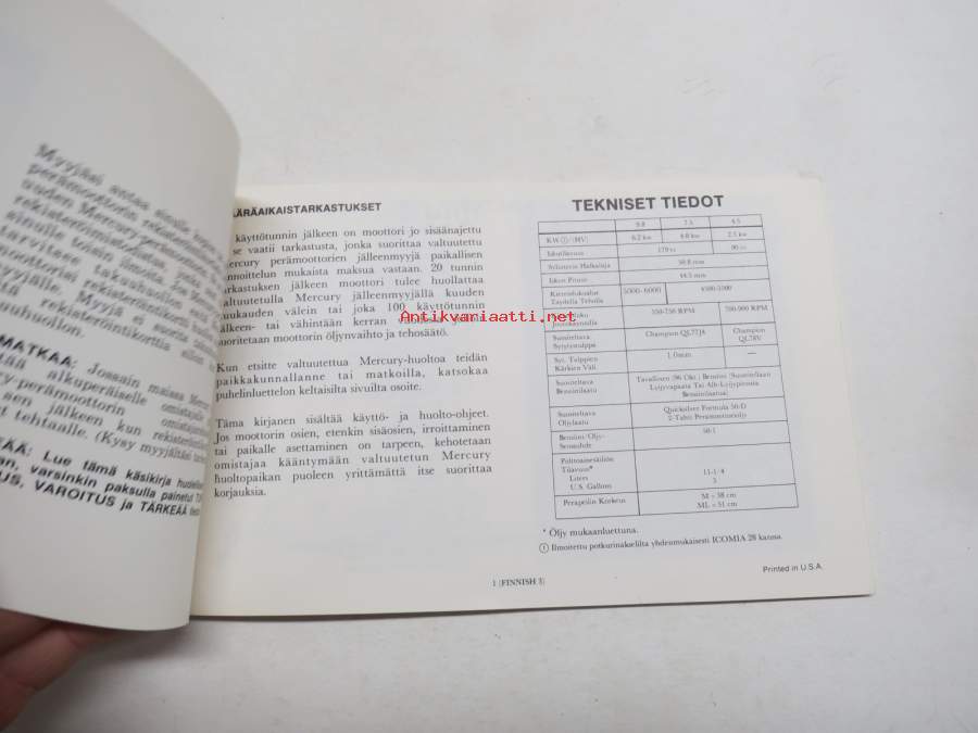 Mercury Merc - 4,5 - 7,5 - 9.8 outboard perämoottori -käyttöohjekirja, suomenkielinen