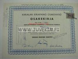 Karjalan Kirjapaino Osakeyhtiö, Helsinki 1955, 10 000 mk, Osakeyhtiö Etelä-Savo -osakekirja nr 516