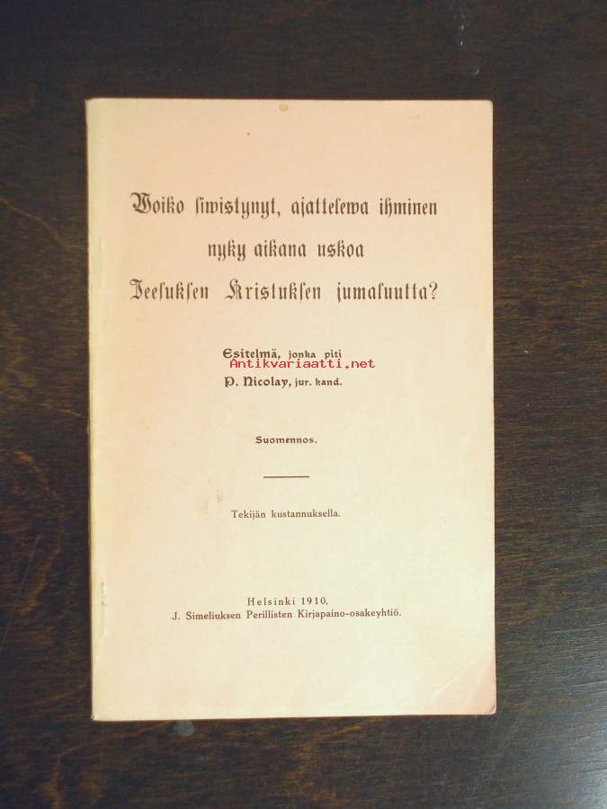 Esitelmä, jonka piti P. Nicolay, jur. kand.