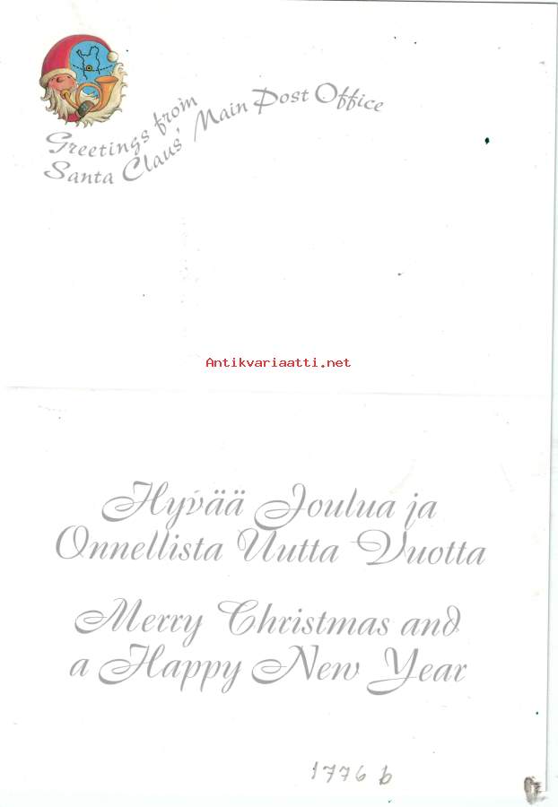Marja Liisa Pitkäranta, taittokortti. Joilupukin pääpostikonttorin teettämä. Kortin keräily numero 1776 b..