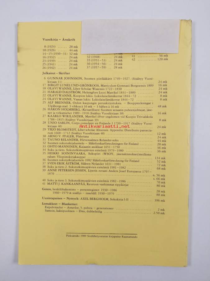 Genos vuosikerta 1989 1-4 : Suomen sukututkimusseuran aikakauskirja