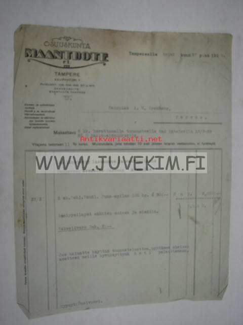 Osuuskunta Maantuote r.l., Tampere 27.2.1929 -asiakirja