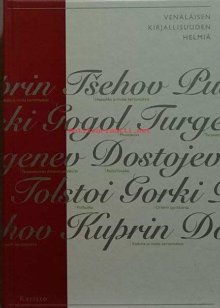 Kirjaan on koottu venäläisten klassikoiden ystäville valikoima eri kirjailijoiden kertomuksia, pienoisromaaneja ja novelleja. Mukana mm: Maksim Gorki, Leo Tolstoi, Anton Tshehov jne. Dimensiot 21 ¤ 15 cm.