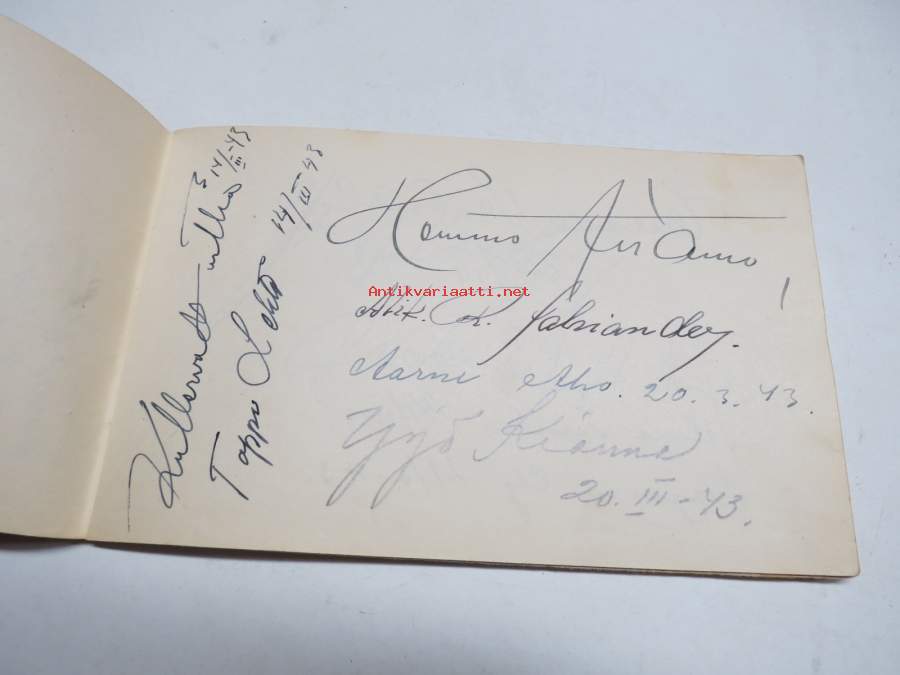 Alkuperäinen nimikirjoitus vuodelta 1943, sivu irroitettu isommasta kokonaisuudesta.