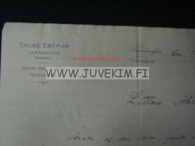 Thure Ertman Tammerfors 16.9.1908 -dokument, asiakirja