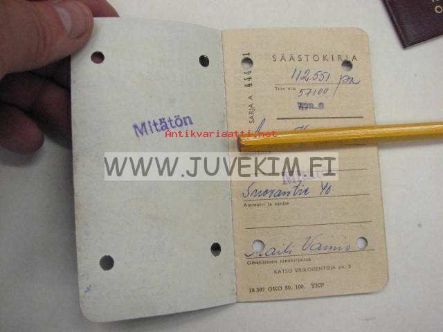 7 x 12 cm pankkikirja.