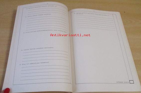 Kirja siisti, ehjä, edellisen omistajan nimi, kirjan tehtävät täyttämättä, Postitus Kirjepakettina