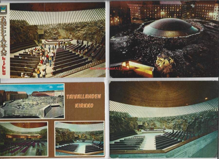 Temppeliaukion Kirkko - paikkakuntakortti, kirkkopostikortti postikortti 4 eril muovitaskussa