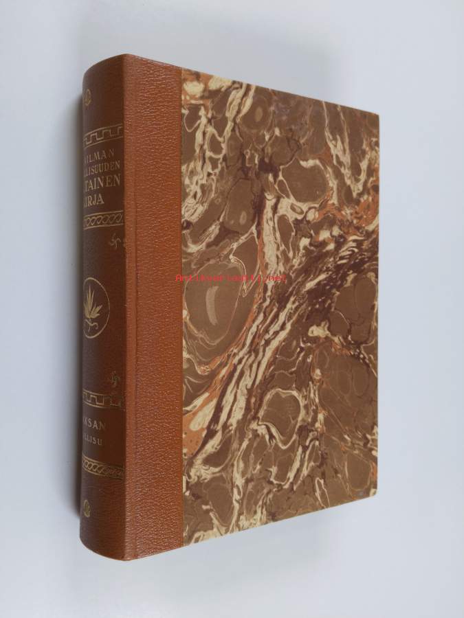 Hyvä. Hieman kulumaa reunoilla ja kulmissa, hieman läikkää yläkulmissa, selkämyksessä hieman vinoutta