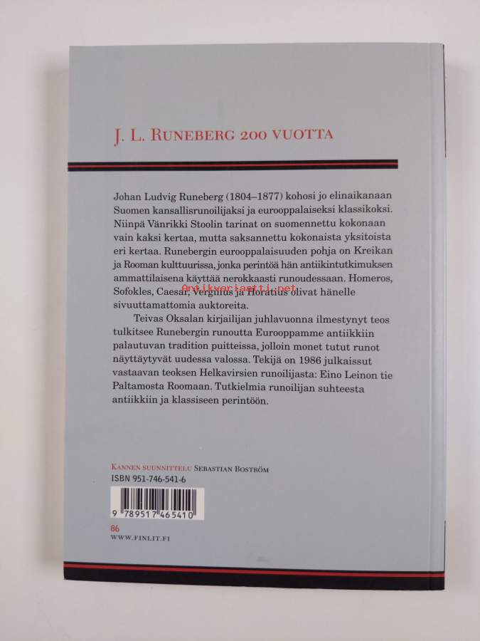 J L Runebergin Kreikka ja Rooma : tutkielmia runoilijan suhteesta antiikkiin ja klassiseen perintöön