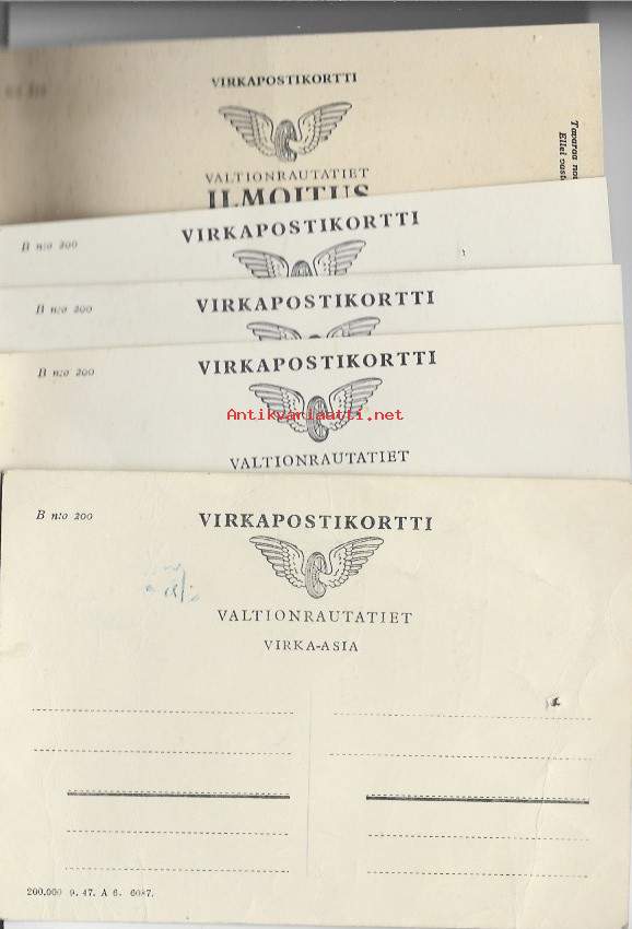 Valtionrautatiet virkapostikortti - firmakortti n 5 kpl erä
