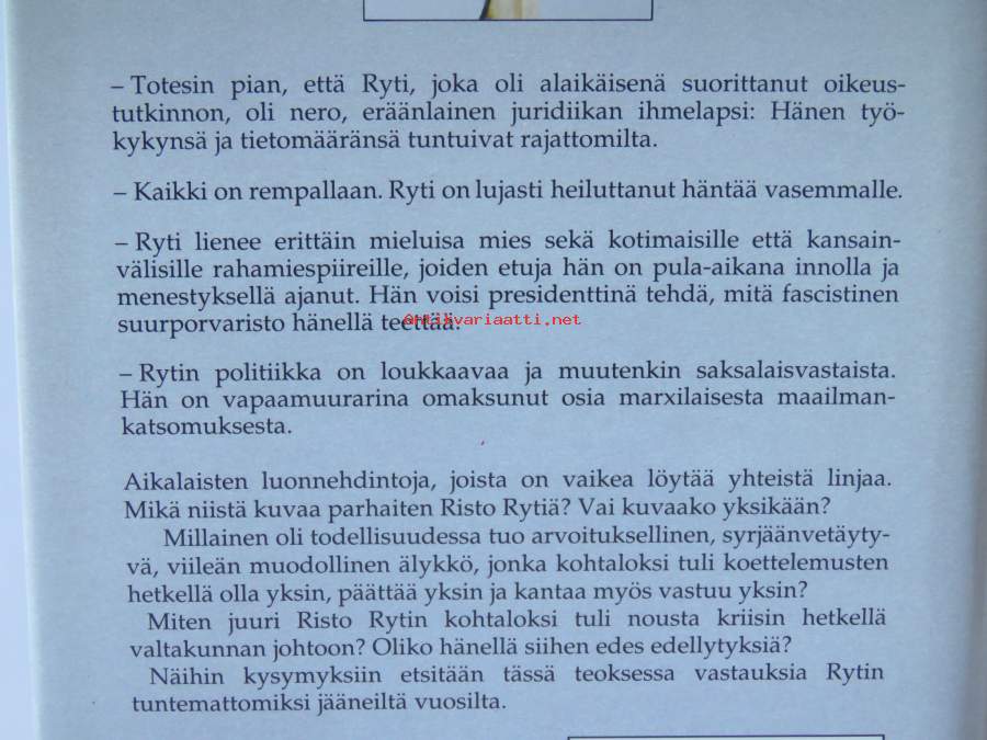 Kohtalona yksinäisyys. Risto Rytin tie Suomen politiikan johtoon.