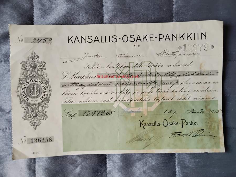 Joutsan Joutsa Kunnan Säästöpankki on maksanut talletus-konttokurantille 13979,05 Smk, Heinola