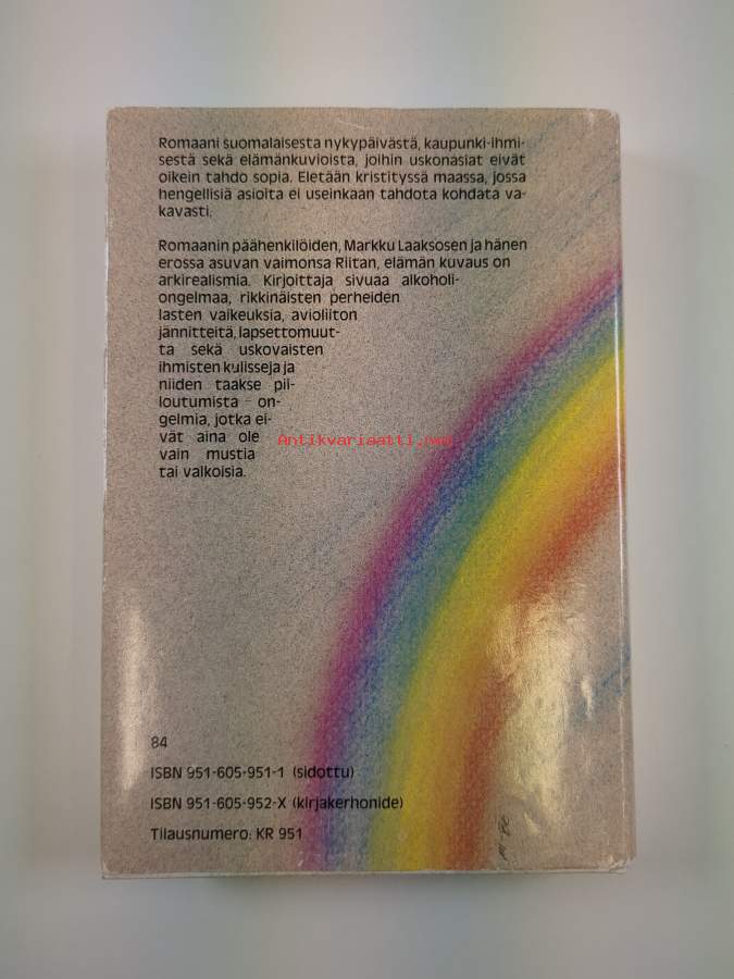 Hyvä. Pienoista kulumaa kulmissa, pienoista nuhruisuutta reunoilla, selkämyksessä hieman vinoutta. Kansipaperin kunto: joitain repeämiä/kulumaa
